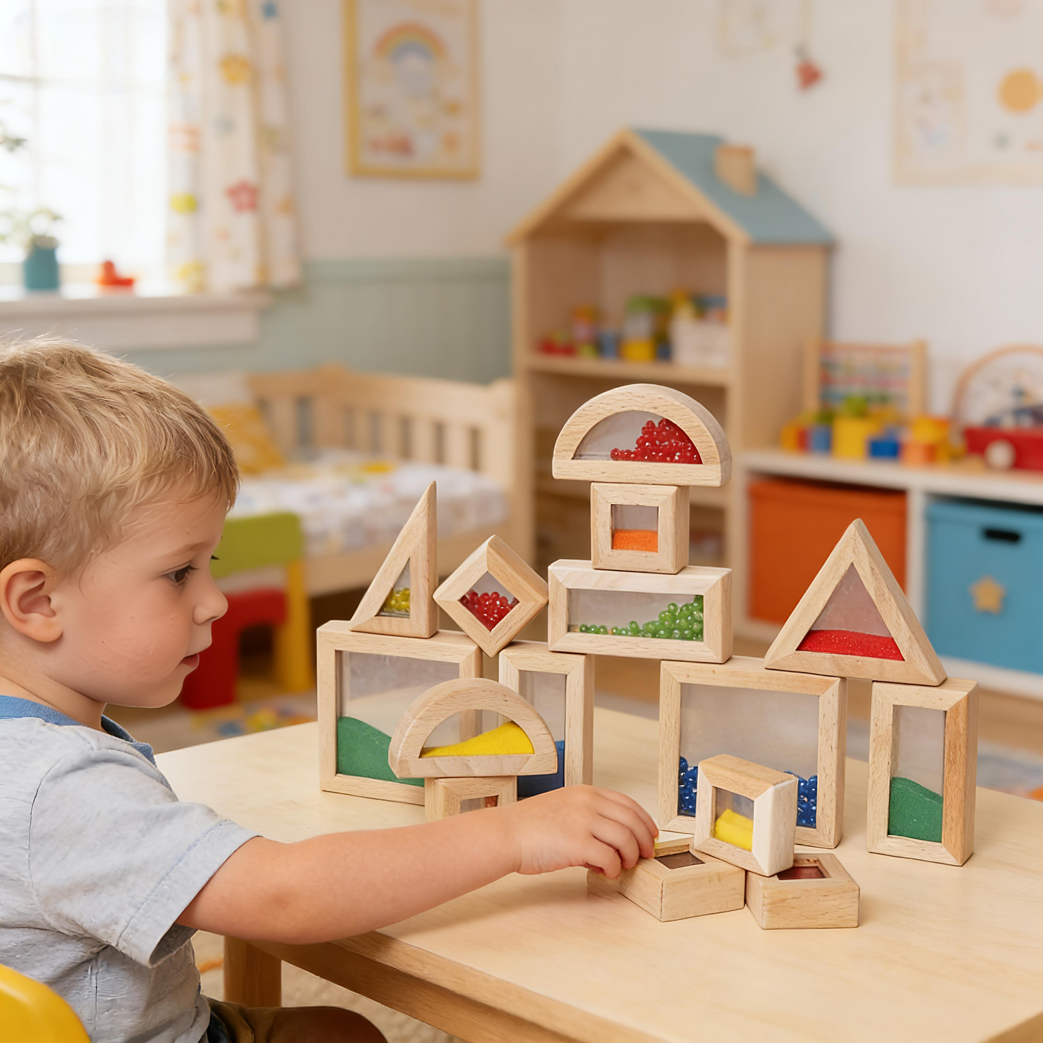 By providing a tactile and visually stimulating sensory experience, these blocks help children immerse themselves in imaginative exploration—from discovering the sounds and textures of hidden beads and sand to building colorful, dynamic structures, nurturing curiosity, spatial awareness, and fine motor abilities along the way.