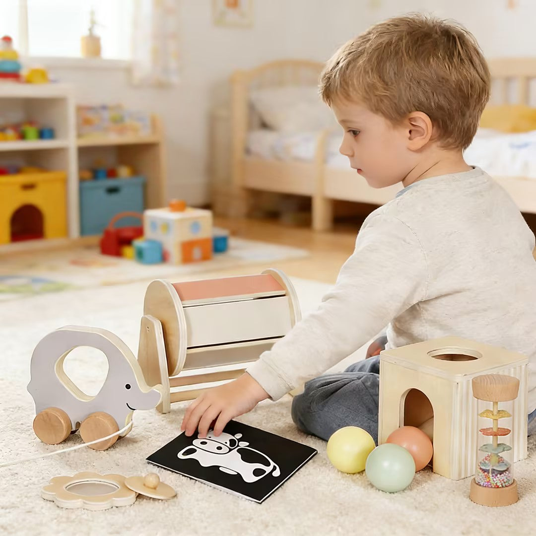 6-in-1 Sensory Toy Set Wooden Montessori Toys for Baby Newborns